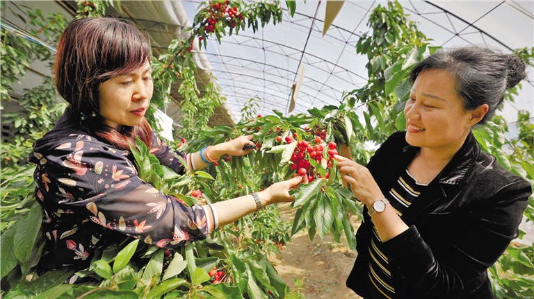 5月1日,樱桃园、草莓园、水果黄瓜园里的游客络绎不绝,一家三口或三五好友在绿意盎然的果蔬间采摘、游园、品鲜,共享团聚休闲好时光。
