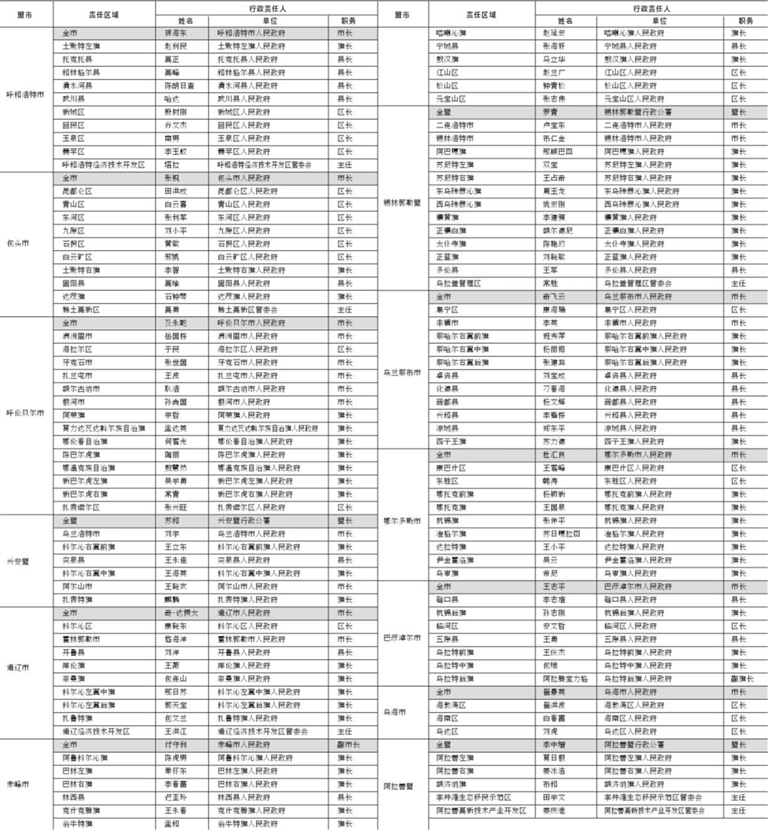 2023年内蒙古自治区防汛抗旱行政责任人名单