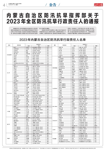 内蒙古自治区防汛抗旱指挥部关于 2023年全区防汛抗旱行政责任人的通报