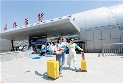 6月17日,“西安—锡林郭勒万人互游”首批西安游客正走出锡林浩特机场,40名西安游客将开启5日的草原之旅。今年,锡林郭勒盟与西安市签订“万人互游”战略协议,旨在进一步推动两地资源互补、客源互送、信息互通,共同开拓旅游市场,实现合作共赢。 本报记者 毕力格巴特尔 摄