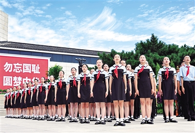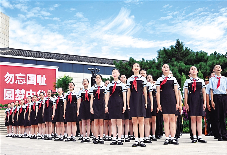 卢沟桥畔,气氛庄重。中国人民抗日战争纪念馆巍然矗立。上午10时,纪念仪式在雄壮的国歌声中开始。首都学生代表饱含深情地朗诵了抗战诗文,首都大学生合唱团演唱了《延安颂》《没有共产党就没有新中国》,表达了年轻一代坚定不移跟党走的信念,抒发了当代青年矢志为中华民族伟大复兴而不懈奋斗的决心。