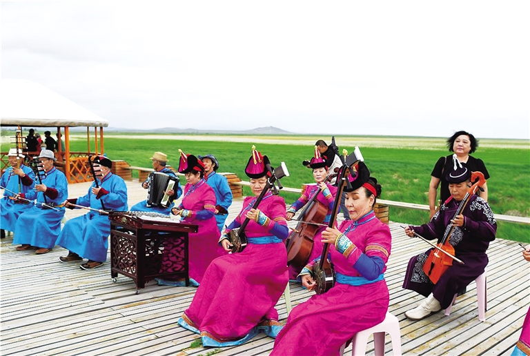 活动现场,歌曲《我爱你中国》《鸿雁》《锡林郭勒草原》等曲目表达了大家对祖国、家乡的热爱之情,舞蹈《亮丽北疆内蒙古》《戈壁沙丘》以及热烈奔放的马头琴重奏《万马奔腾》将开幕式推向高潮。