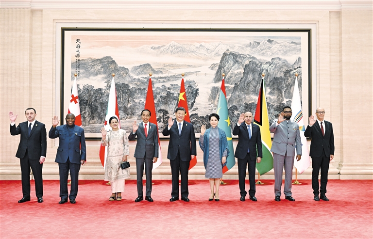 他们是:印度尼西亚总统佐科和夫人伊莉亚娜、毛里塔尼亚总统加兹瓦尼、布隆迪总统恩达伊施米耶、圭亚那总统阿里、格鲁吉亚总理加里巴什维利以及国际大体联代理主席艾德。