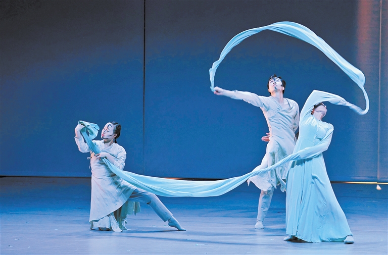 水袖翩跹,光影起伏。在舞剧《青衣》里, 表演者舞动水袖,与极具冲击力的现代音乐、光影相结合,唯美地再现了一位情感真挚的“青衣”。主人公内心的幽微变化,命运的颠沛流离,都化成了无声的肢体语言和舞台表达,为观众诠释了“一袭青衣一场梦”。