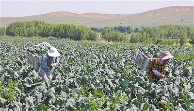 盛夏,卓资县十八台镇的西兰花迎来大丰收,抢“鲜”上市销售。