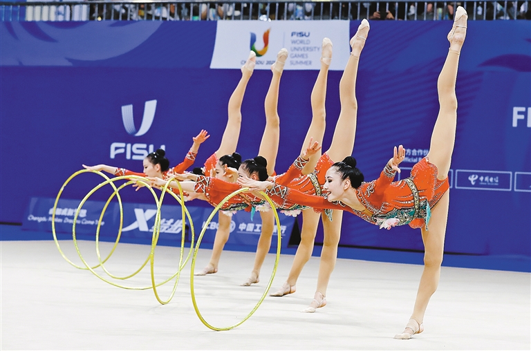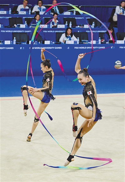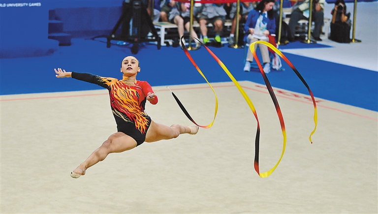 身姿曼妙,舞步翩翩,轻盈跃动。艺术体操项目比赛中,和着节律,运动员们身着华丽闪耀的服装,迈出铿锵优美的舞步,展现刚劲有力的舞姿。这是力与美的完美融合,这是一场酷炫的青春风暴。跳起来吧!舞起来吧!让生命充满力量,让青春绽放光彩。