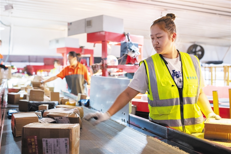 8月18日,呼和浩特市燃热集团脑包物流园区,工人正在对包裹进行分拣作业。随着该园区启动网络货运平台业务后,园区整体快件分集水平有了新的提升。据了解,网络货运平台业务既能通过对园区大数据云计算的提质升级,强化监督管理,细化助企服务,同时结合地方税收优惠政策,为企业及驻园经营个体降成本增效益,提振驻园企业、个体,营商信心。目前该园区日均入园大型货车约800辆次,分拣快件约106.5万单。本报记者 怀特乌勒斯 摄