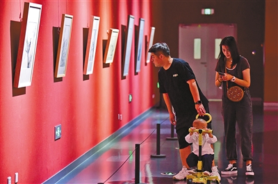 日前,观众在内蒙古美术馆参观呼和浩特市第一中学校友书画展。以建校120周年系列活动为契机,呼和浩特市第一中学在内蒙古美术馆举办“丹青不渝 教泽传衍——知名校友书画展”,该校也成为呼和浩特首家在专业场馆举办书画展的中学。本次参展作者有上至91岁高龄的著名油画家妥木斯,下至16岁的高二在校生,参展作品种类包括书法、国画、油画、水彩、艺术设计、雕塑、文创等。本报记者 王磊 摄