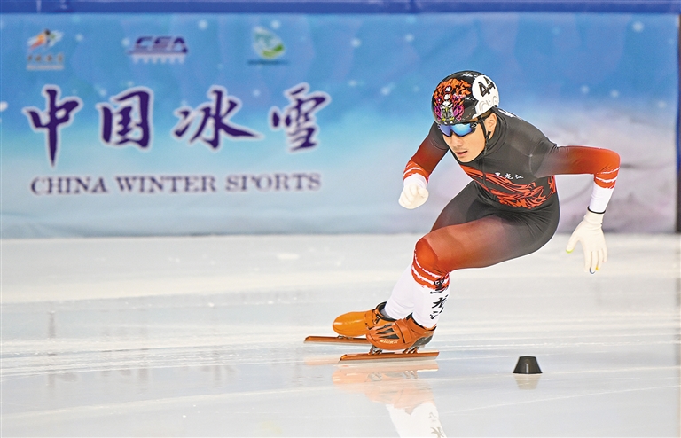 脚踏冰刀、风驰电掣,中国杯短道速滑精英联赛呼和浩特站暨“十四冬”资格赛期间,武大靖、任子威、林孝埈、范可新等奥运冠军相继亮相,在冰面上展示出“中国速度”。