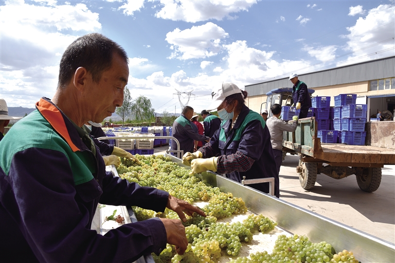 此外,乌海市葡萄基地建设实现区域化布局,葡萄产业实现园区化、标准化、规模化发展,加工、保鲜、贮藏等产业链条不断延伸,逐步形成“龙头+基地”“企业+农户”的发展模式,产业带动力、抗风险力逐步增强,经济效益持续攀升。