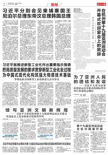 习近平和彭丽媛为出席杭州第19届亚洲 运动会开幕式的国际贵宾举行欢迎宴会