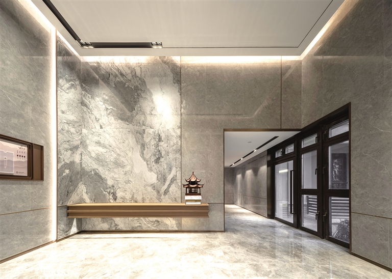 为给业主营造独一无二的归家仪式感,臻如府自入门开始便精心布置,绿植、小景、流水巧妙搭配,层层递进的归家之路,彰显有关幸福的无限可能。穿过归家园林,地上地下酒店式精装双大堂赫然映入眼帘,奢阔层高搭配朗逸空间细节,引得现场业主阵阵惊叹。