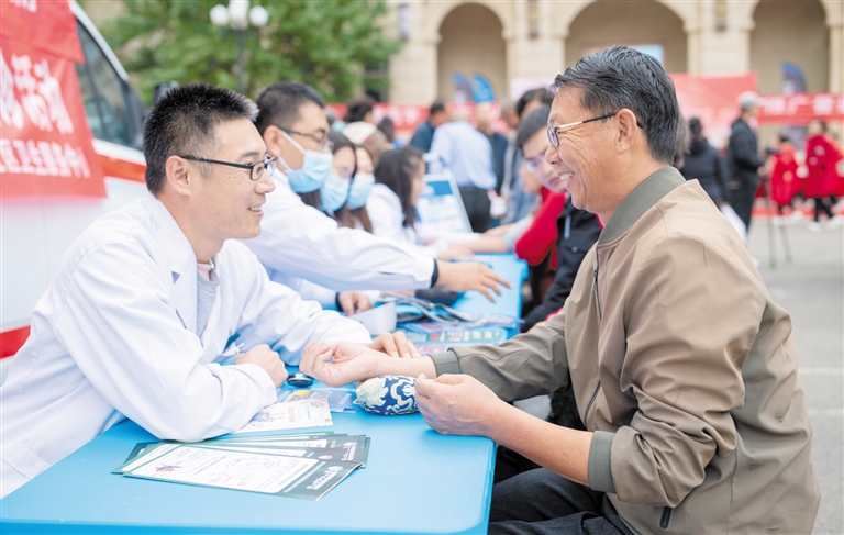 10月19日,医生为残疾人士义诊。当日,呼和浩特市赛罕区昭乌达南路街道在辖区举办“暖情助残圆梦 爱心点亮生活”残疾人趣味运动会。现场进行了套圈、棋牌等形式多样的趣味活动以及爱心义诊等暖心服务。本报记者 怀特乌勒斯 摄