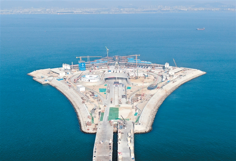 这是深中通道西人工岛,形似巨大的风筝(11月27日摄,无人机照片)。 11月28日,粤港澳大湾区超级工程深中通道主线正式贯通,这是其明年通车前最重要的进展。该项目通车后,珠江口东西两岸的深圳市和中山市将进入“半小时生活圈”,促进粤港澳大湾区城市群的互联互通。 深中通道是粤港澳大湾区核心交通枢纽工程,全长24公里,集“桥、岛、隧、水下互通”于一体,其中,海底隧道长约6.8公里。 今年6月,深中通道海底沉管隧道在伶仃洋海底实现合龙。此后,建设者们又完成了沉管内全部压舱混凝土的浇筑。11月28日,海底沉管隧道实现贯通,意味着深中通道的主线正式贯通。 深中通道双向8车道,设计时速100公里,计划于2024年建成通车。届时,深圳与中山的车程,将从现在的2小时缩减为约20分钟。 作为连通珠江口东西两岸城市群的交通大动脉,深中通道将与已建成的港珠澳大桥、南沙大桥、虎门大桥等,共同组成大湾区跨海跨江通道群。 新华社记者 邓华 摄