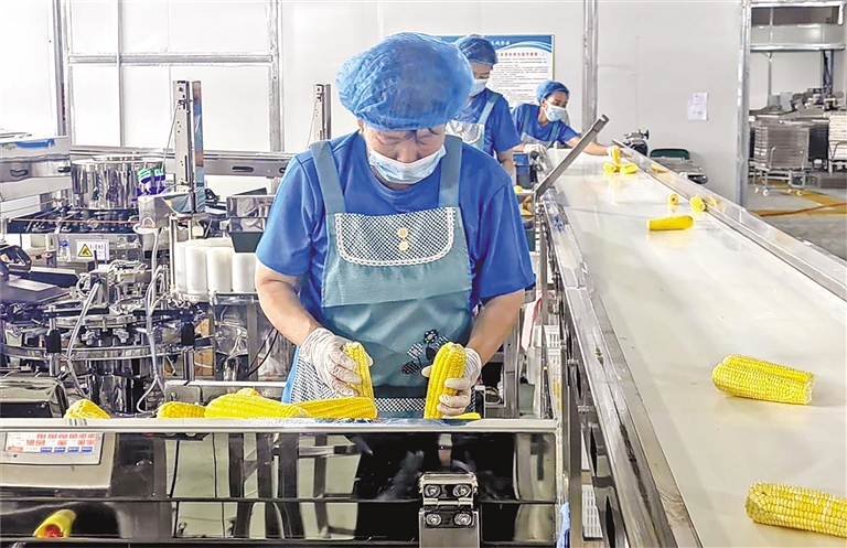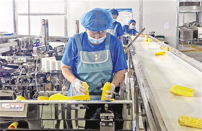 尔汉食品有限公司今年种植糯玉米2000多亩,生产鲜食玉米500多万穗。在鲜糯玉米精深加工厂的生产车间,一穗穗“黄金棒”在机器上翻滚着,经过分拣、切割、蒸煮、杀菌等各环节,从地里收获的玉米棒在60分钟内便可迎来“华丽转身”。