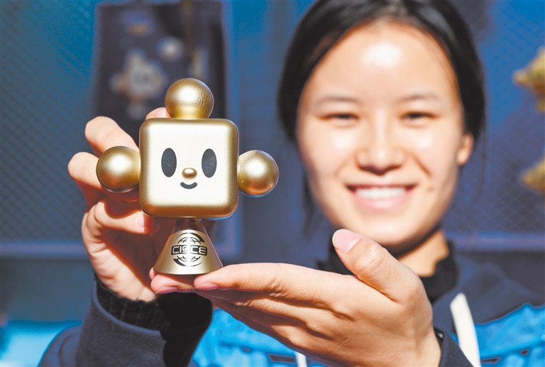 “链氪”是首届中国国际供应链促进博览会(以下简称链博会)的吉祥物。在首届链博会上随处可见带有“链氪”元素的路牌、花坛和各种导引系统等。同时“链氪”元素的文创品广受欢迎,不少参观者选择带着“链氪”文创产品逛展区,成为会场上的“新时尚”。
