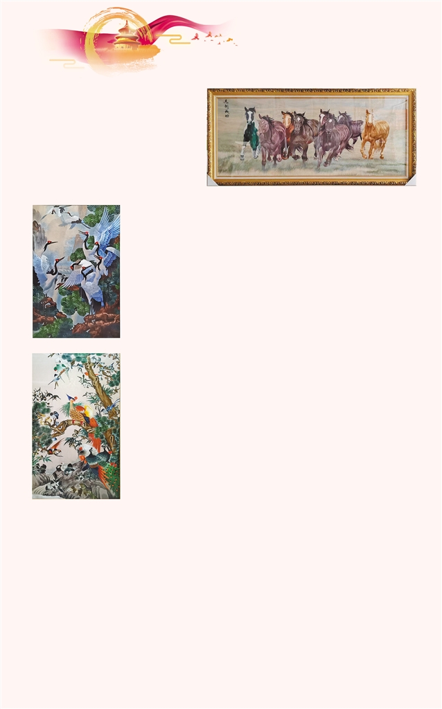 在乌仁其木格家的墙上,挂着一幅《百鸟朝凤》刺绣作品,这是她按照清代花鸟画家沈铨的名画《百鸟朝凤图》历时半年创作的,也是她融合了南北刺绣技法的得意之作。