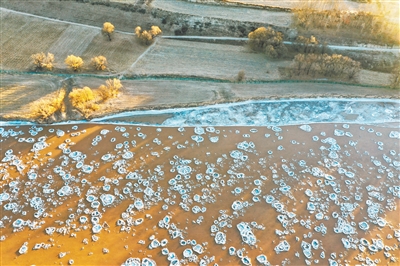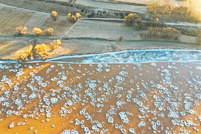 12月1日,黄河内蒙古托克托县头道拐河段的流凌景色奇特壮观。目前,受寒潮天气影响,黄河内蒙古段已经全线流凌,局部河段出现封河。本报记者 王晓博 摄