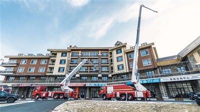 12月7日,赤峰市消防救援支队在喀喇沁美林谷滑雪场开展了“十四冬”消防安保灭火救援实战演练。本次演练,共调集周边5个消防救援大队、6个消防站、10台消防车、40名指战员以及相关社会联动力量参加,充分检验和提升了消防救援队伍应对突发事故的协同作战和处置能力,为“十四冬”喀喇沁赛区消防安保工作奠定了坚实基础。 本报记者 肖璐 摄