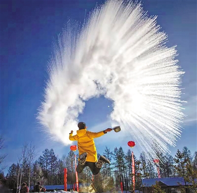 进入12月份,“中国冷极”根河市已是银装素裹,玉树琼枝,最低气温达到零下36℃。在敖鲁古雅使鹿部落景区,造雪机正在24小时不间断造雪,为冰雪乐园中的冰雕、雪雕建设提供充足“雪源”。