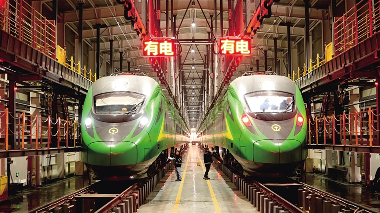 为满足春运期间旅客出行需求,中国铁路呼和浩特局集团有限公司加开临客列车33对,同时加强动车组库内检修作业、车顶高压设备和车底走行部等关键环节的盯控检查力度,严把动车组安全质量关,全力以赴护航春运。 郭成 摄