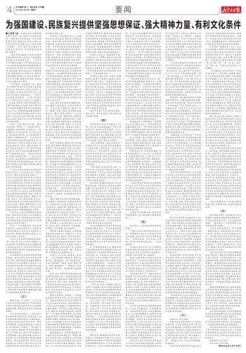 为强国建设、民族复兴提供坚强思想 保证、强大精神力量、有利文化条件