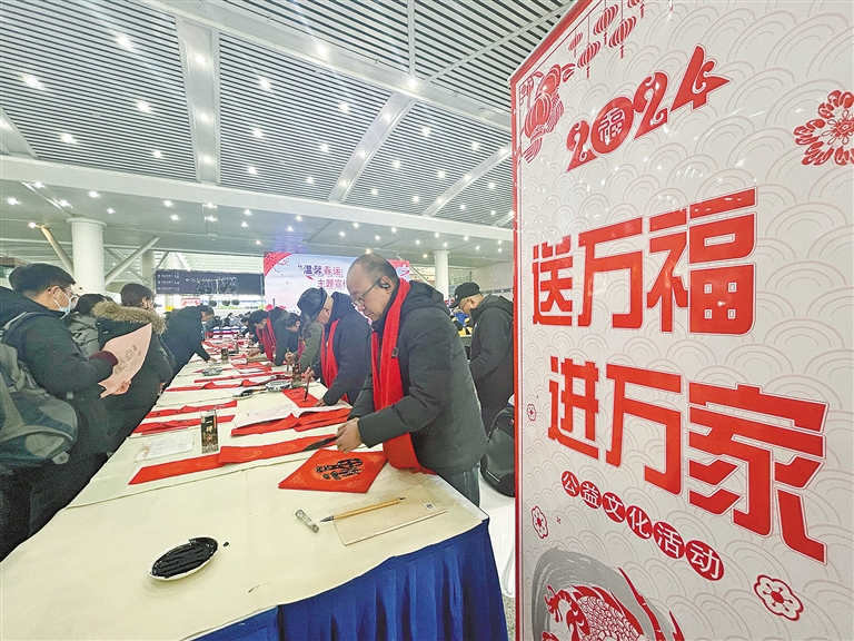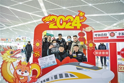 呼和浩特东站装点一新,喜庆的福字、大红的灯笼为踏上旅程的人们带来暖意;在鄂尔多斯开往集宁南的C646次列车上,列车员为旅客送上糖果、福字、春联,车厢内充满了欢声笑语;呼和浩特白塔国际机场航站楼内,人潮涌动,旅客手上拎着大包小包,洋溢着回家的喜悦……