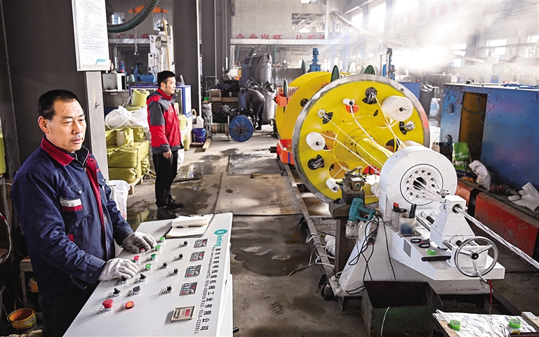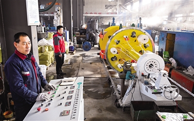 3月1日,在呼和浩特市玉泉区裕隆产业园区内蒙古伯特利线缆制造有限公司生产车间,工人们在赶制特种线缆订单产品。如今,呼和浩特市各企业铆足干劲忙生产,奋力冲刺首季开门红。 本报记者 王磊 摄