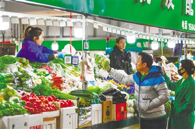 近日,市民在呼和浩特市保全庄农贸市场选购蔬菜。据呼和浩特市价格认证监测中心监测显示,3月初开始呼和浩特市副食品零售价格以降为主。其中,15种蔬菜周平均零售价格为4.02元/斤,比上周每斤下降0.18元,降幅4.29%。本报记者 王磊 摄