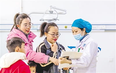3月19日,市民在贵州省黔西市人民医院口腔科向医生咨询口腔健康知识。世界口腔健康日将至,各地开展口腔健康主题活动,倡导人们养成良好口腔卫生习惯,预防口腔疾病。新华社发