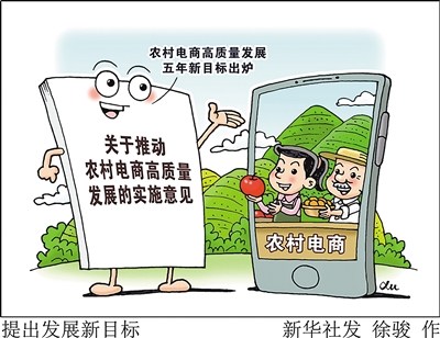 商务部、中央网信办等9部门近日联合印发《关于推动农村电商高质量发展的实施意见》。意见提出,用5年时间,在全国培育100个左右农村电商“领跑县”、1000家左右县域数字流通龙头企业、1000个左右县域直播电商基地、10000名左右农村电商带头人。新华社发 徐骏 作