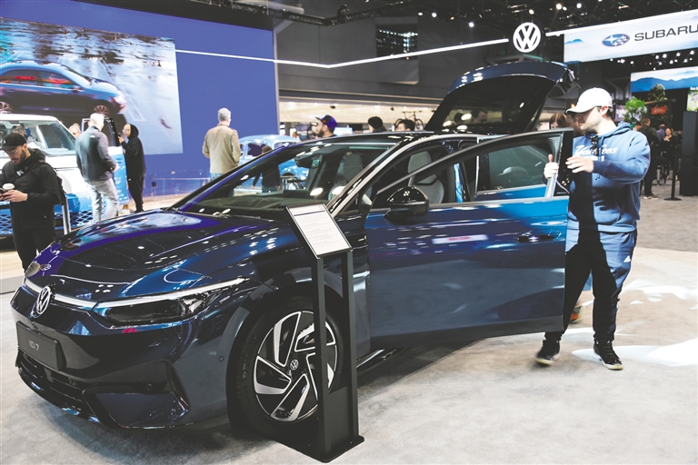 3月29日,人们在美国纽约国际车展上参观。为期10天的2024年纽约国际车展29日对公众开放,超过20个汽车厂商参加展览。