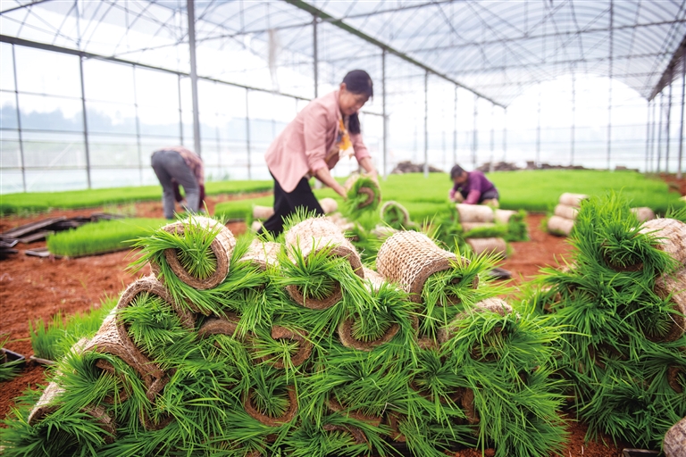 4月18日,在湖南省娄底经济技术开发区涟滨街道一育秧大棚内,村民在搬运秧苗。谷雨节气将至,春耕春管进入关键时期,各地农民不误农时开展农业生产,田间地头到处是一派繁忙景象。