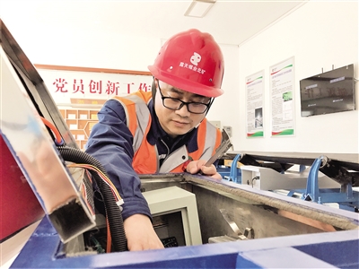 国家电投内蒙古公司北露天煤矿运输工程部党支部充分发挥战斗堡垒作用,将“党建+”融入安全生产,通过开展安全知识竞赛、党员身边无违章等活动,以及建立党员安全责任区、示范岗等方式,组织全体党员干部进一步树牢安全意识。图为北露天煤矿党员李忠飞在党员创新工作室调试输煤系统智能巡检机器人。