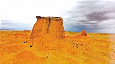 6月6日,游客参观“神驼”风蚀景观,近距离感受大自然的鬼斧神工。该景观位于巴彦淖尔市乌拉特后旗巴音前达门苏木,主体高约36米,居北仰望,酷似昂首欲奔的骆驼。乌拉特后旗是内蒙古特种旅游核心区,2023年共接待游客175.87万人次,拉动旅游消费8.43亿元。本报记者 薛来 摄