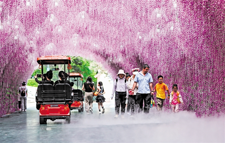 6月9日,游人在沈阳方特欢乐世界游玩。 新华社记者 龙雷 摄