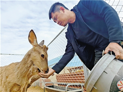 夏日,走进通辽市科尔沁区庆和镇四方地村鹿之源鹿业养殖基地,成群的梅花鹿色泽斑斓、围栏而聚,活泼可爱。养殖户陈雪超正在给梅花鹿拌草料,听见声响,一只只小鹿围着圈舍跑了起来。“现在我的圈舍里有100只梅花鹿,很多母鹿最近都要产仔了,每天我都要对它们的健康状况进行监测,详细做好记录。”陈雪超说。