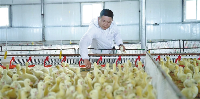 “天热了,一定要注意通风,你看这个鹅苗长得多好,咱好好干,今年再多挣点钱!”养殖大棚内,张伟正在给韩俊红夫妇传授养鹅经验,见小鹅苗成活率高又有精气神儿,他高兴得不得了。