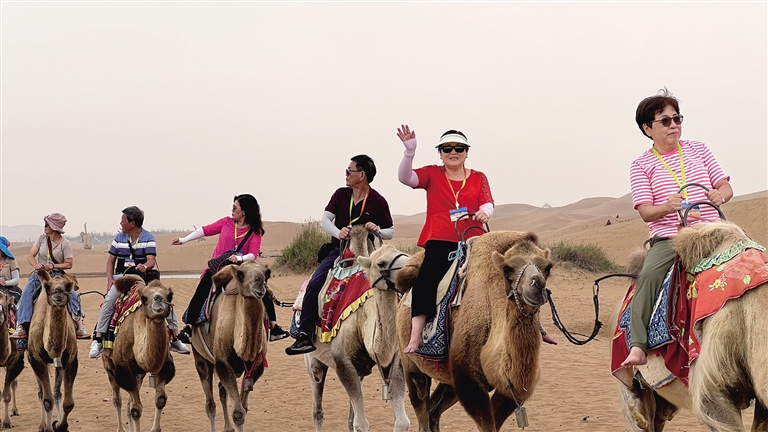 眼下,正值旅游旺季,乌海市的各旅游景点人气高涨,这座大漠湖城再次“火出圈”。在宽阔的乌海湖面上,游客乘船游湖,欣赏满眼的湖光山色;在乌兰布和沙漠,身骑骆驼探索沙海,开启别样之旅;在当代中国书法艺术馆,畅游在翰墨之中,感受书法文化的深厚底蕴……一湾黄河贯穿古今,一片大漠驼铃悠扬,一笔墨韵挥洒山河,一杯美酒醉人心房,当您看过长河落日、品过红色温柔、穿过浩瀚沙海、体会墨韵书香之后,乌海会让您“来了还想来、走了还想念”。