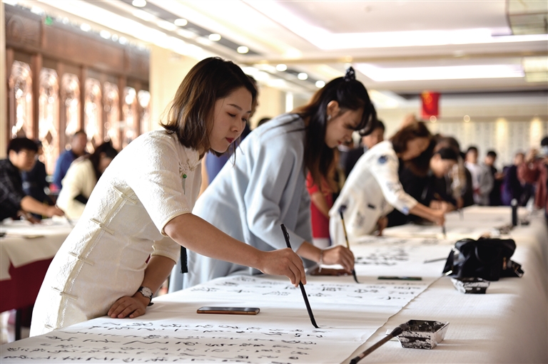 7000年前先人们凿刻的桌子岩画生动记录了乌海历史,这些岩画中的图案表情丰富、形态各异,几乎都是独立的个体,风格古朴又奇幻,被誉为我国人面像岩画制作中的精华,直观而形象地展示了远古时期乌海先民的生产生活状态。如今的乌海人,踏着先民的足迹,不断书写新的奇迹。上世纪50年代末,来自全国各地的数万名建设者响应国家号召,汇集乌海,开发煤炭。劳动之余,书法成为大家寄托情思、对外交流的一种方式和乐趣,乌海书法由此发端、蔚然成风。历经半个多世纪,书法已深深地根植于这座城市,拥有了深厚的文化底蕴。