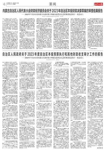 内蒙古自治区人民代表大会财政经济委员会关于2023年自治区本级财政决算草案的审查结果报告