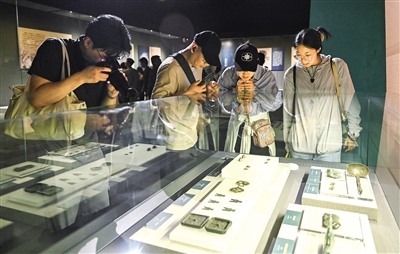 观众感受古滇国青铜文化的独特魅力。本报记者 王磊 摄
