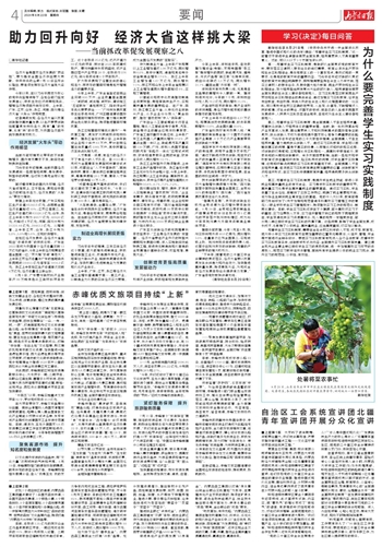 近年来,赤峰市立足文旅资源禀赋,深挖旅游资源,■下转第4版 ■上接第1版 因地制宜、因势利导,创新文旅融合业态,各地区形成整体协同、齐头并进、创意创新、错位发展的高质量发展态势。