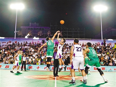在赤峰市元宝山区元宝山镇建昌营村第十六届“民BA”篮球联赛上,来自浙江、河北、贵州、辽宁、内蒙古五个省(区)的20多支球队激烈角逐,奉献58场巅峰对决。本报记者 肖璐 摄
