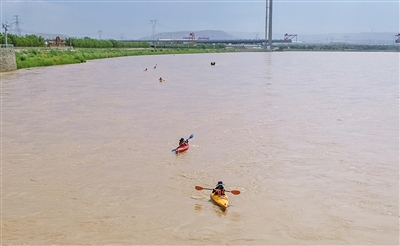 游客在黄河乌海市海南区段进行漂流。近年来,乌海市依托独特地理优势,整合乌海湖、黄河西行客栈等旅游资源,积极开展水上运动、徒步探险、沙漠越野等特色的体育赛事,吸引全国各地的游客畅游乌海。本报记者 孟和朝鲁 摄