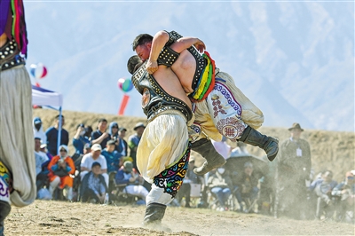 呼和浩特市土默特左旗哈素海杯搏克争霸赛现场,256名搏克手披挂上阵,展开激烈角逐。本报记者 王晓博 摄