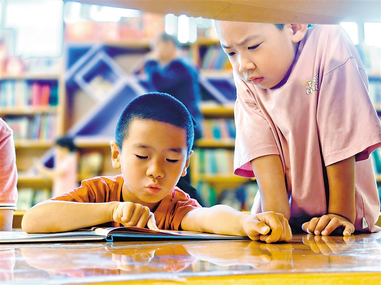 连日秋雨,让书店成为人们的好去处。近日,在呼和浩特市新华书店腾飞路店内,记者看到前来借书、阅读、学习的人仍旧络绎不绝,书香氛围浓厚。在儿童阅读休闲区,除了独自阅读的小朋友,还有不少是家长孩子齐上阵,捧着书籍遨游在书海中,享受着阅读带来的快乐。