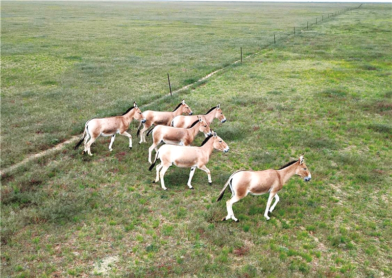 深秋,在锡林郭勒盟苏尼特右旗额仁淖尔苏木乌日希勒图嘎查的草场上,6头野驴在自由觅食。近年来,随着草原生态的稳步恢复,越来越多的国家重点保护野生动物来到苏尼特草原栖息。本报记者 巴依斯古楞 摄