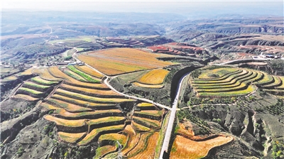 10月11日,鄂尔多斯市准格尔旗沙圪堵镇五字湾村的1600亩“坡改梯”农田丰收在望。“坡改梯”项目的实施让从前跑土、跑水、跑肥的“三跑地”,成为保土、保水、保肥的“三保田”。近年来,准格尔旗已实施“坡改梯”19704亩,当地因地制宜地发展谷米、糜米、荞麦等有机小杂粮产业,已成为当地壮大村集体经济、拓宽群众增收致富的特色产业。