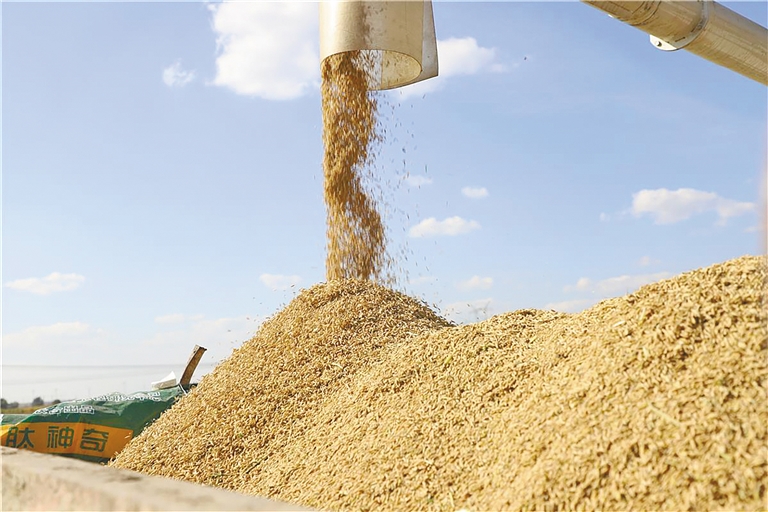 在乌兰浩特市乌兰哈达镇三合村的稻田内,机声隆隆,运粮车里是金灿灿的稻粒。“水稻是我们三合村的特色产业,近几年我们通过改良种植技术,使用无人机精准施肥等科技手段,提升了稻米产量,保证了稻米绿色有机品质。”三合村党支部书记许忠峰介绍。